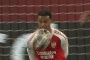 体育资讯03月12日讯 欧冠1/8决赛首回合,阿森纳客战勒沃库森,第22分钟,加布里埃尔用脸挡住对手射门。