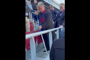 体育资讯2月23日讯 巴萨在本轮西甲主场3-0大胜莱万特,志在竞选新任巴萨主席的拉波尔塔也现身球场。
