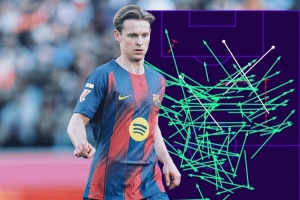 体育资讯2月24日讯 西甲第25轮比赛,巴萨在诺坎普以3-0的比分完胜莱万特。本场比赛,弗兰基·德容首发出战表现抢眼。