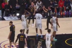 比赛进行至第三节时,裁判对鹈鹕和湖人同时发出警告:“两队都在不停地抱怨!两队都在不停地抱怨!(Continuous complaining both teams!)”
