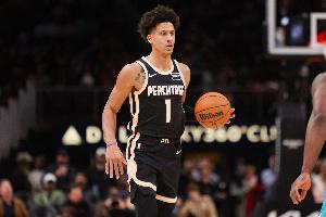 本赛季杰伦·约翰逊场均砍下22.9分10.5篮板7.9助攻1.3抢断。